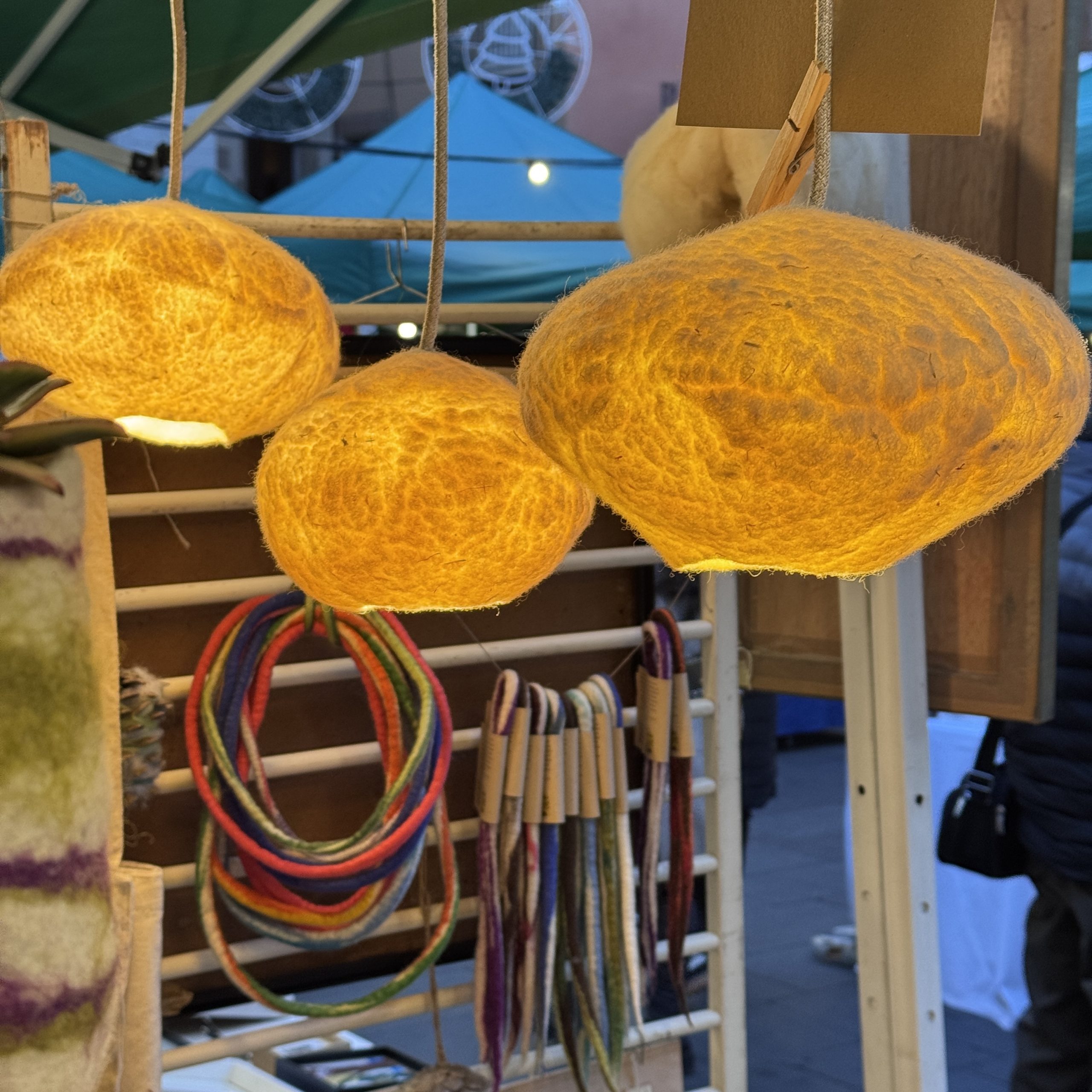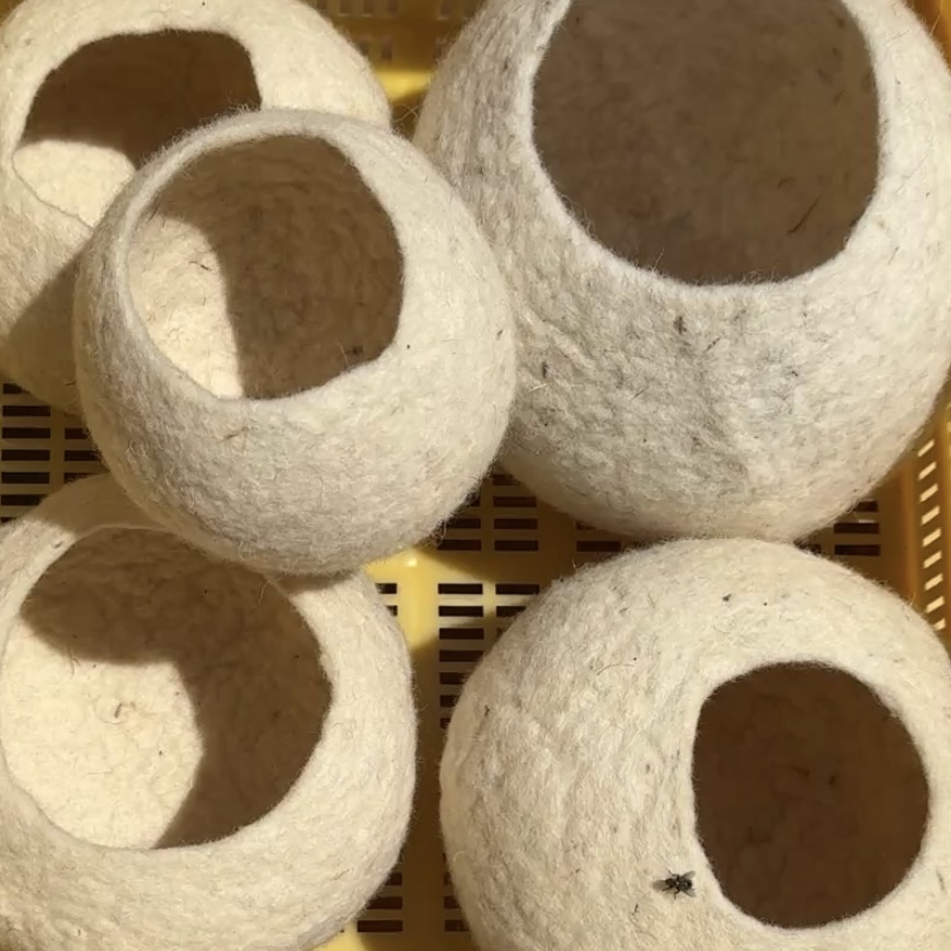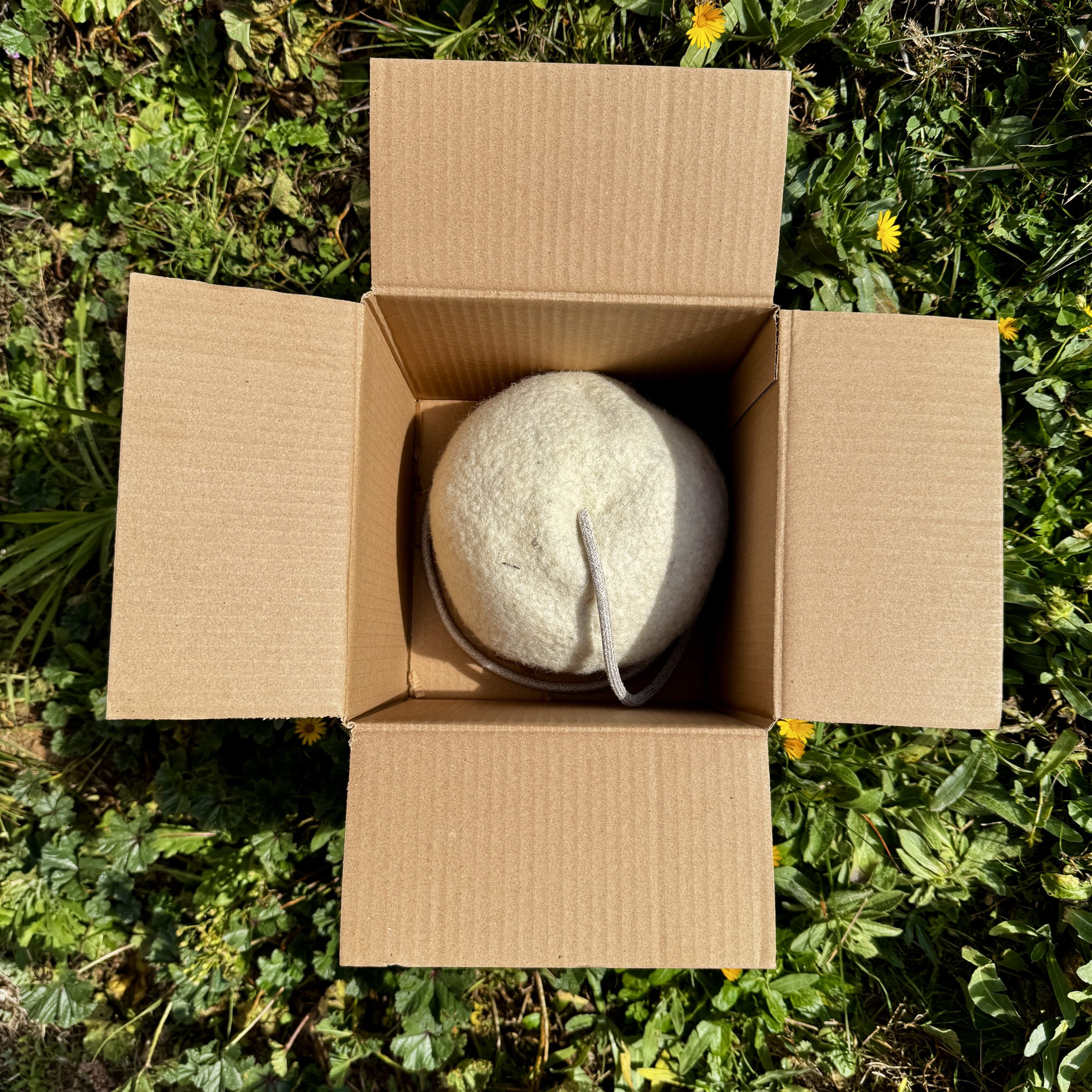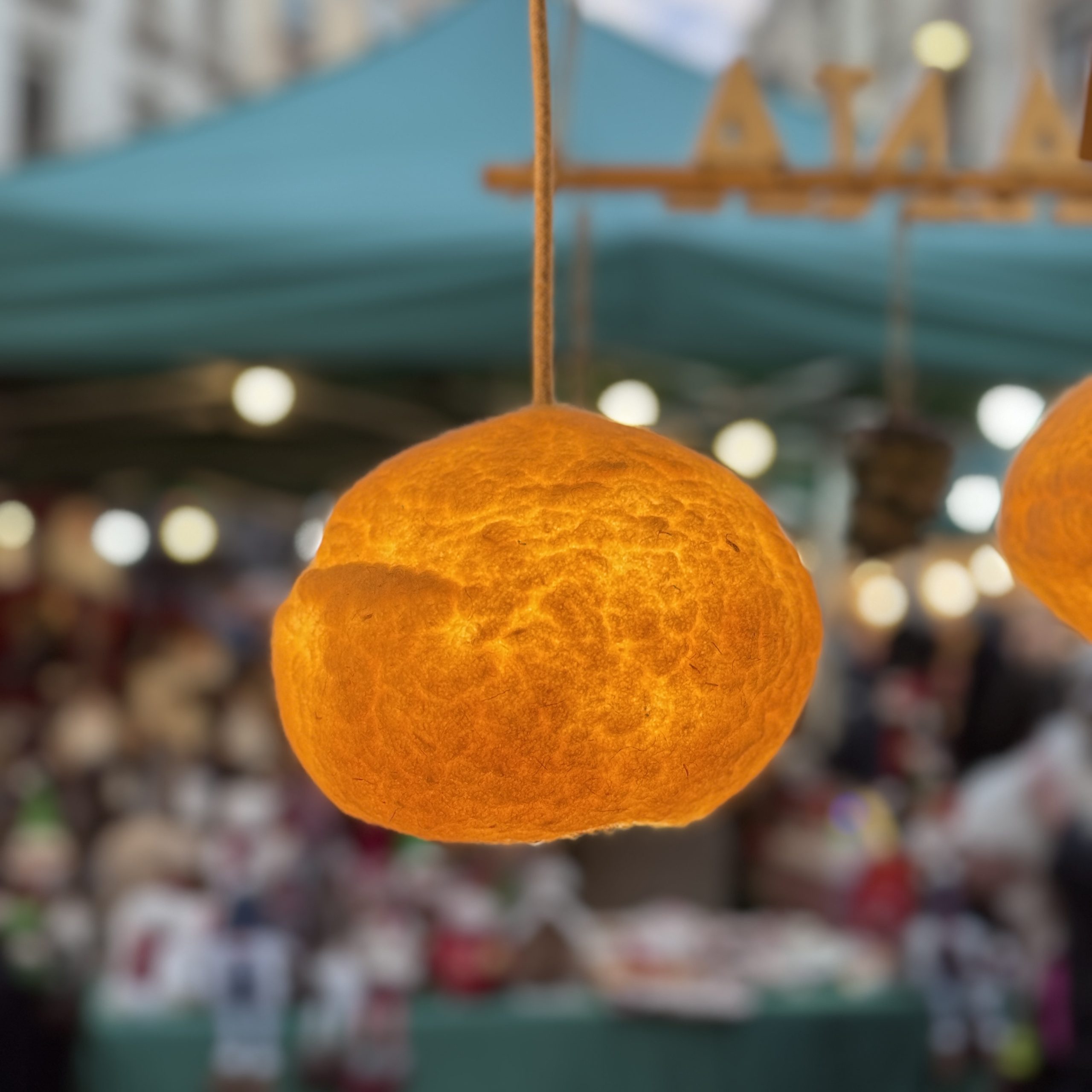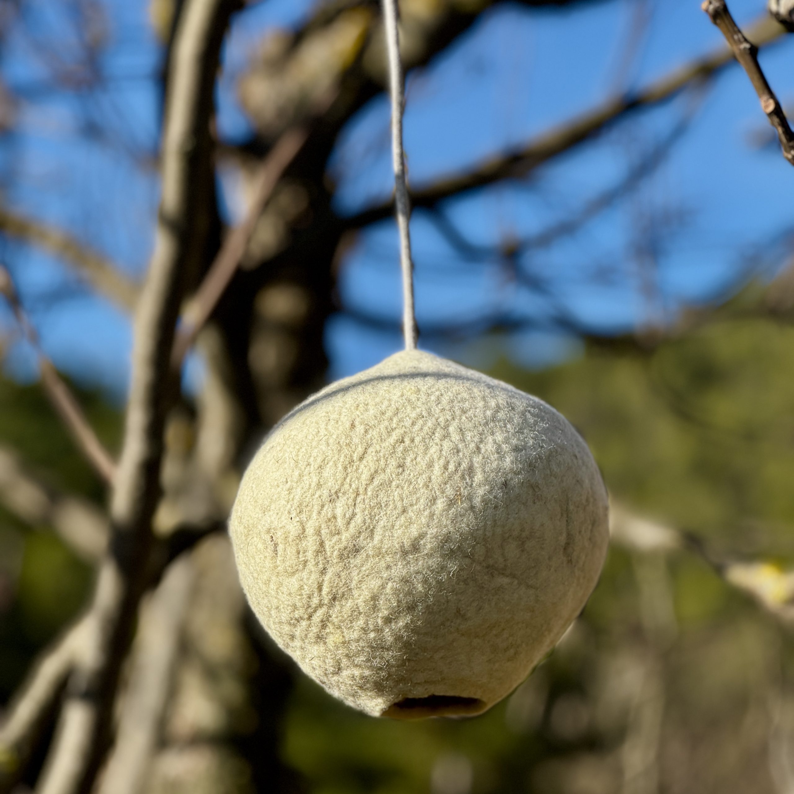 - Pantalla esfèrica de llana d’ovella enfeltrada – Diàmetres disponibles: [petit: 15/17 cm] / [gran: 22/24cm]