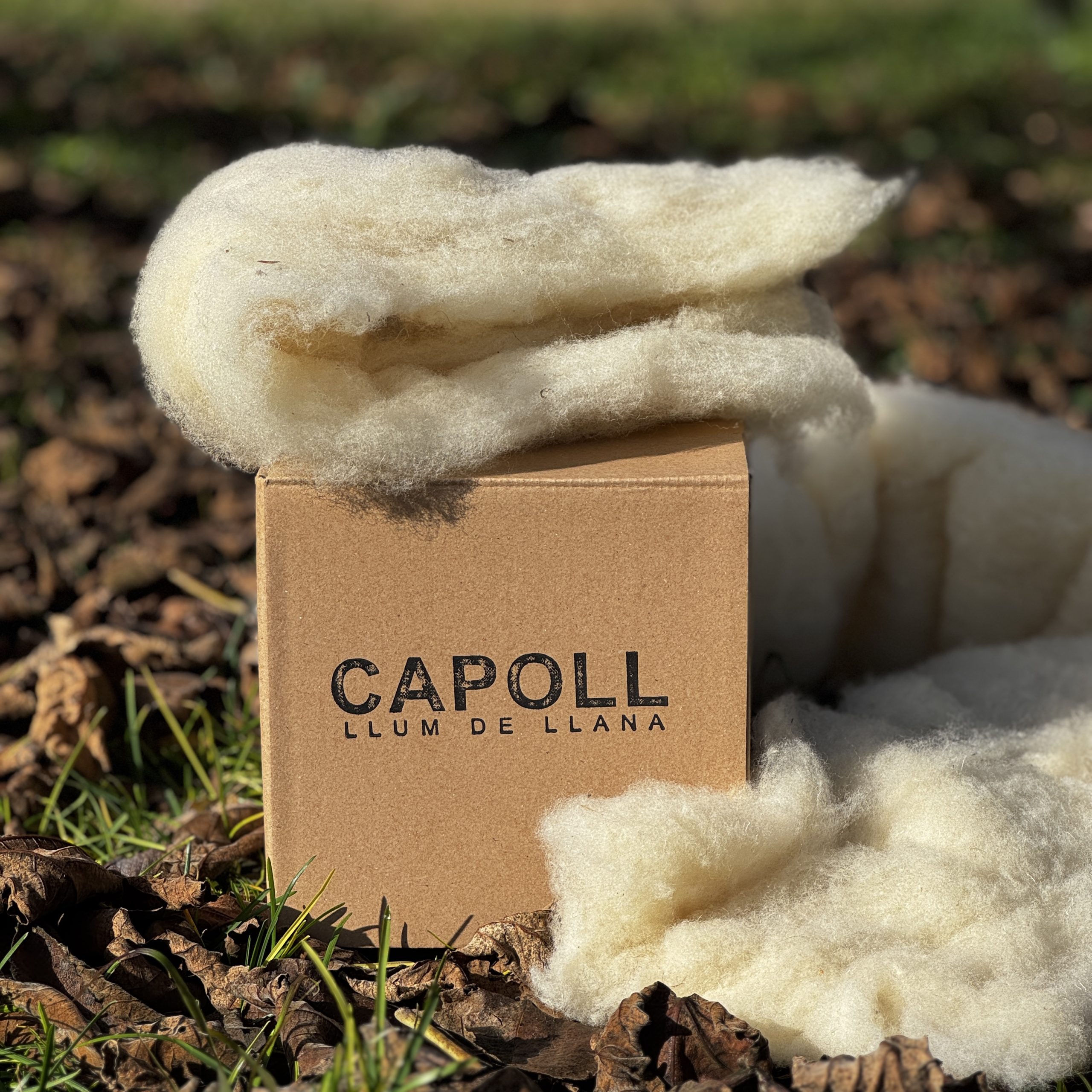 - Pantalla de llana d’ovella ripollesa catalana blanca natural, biodegradable