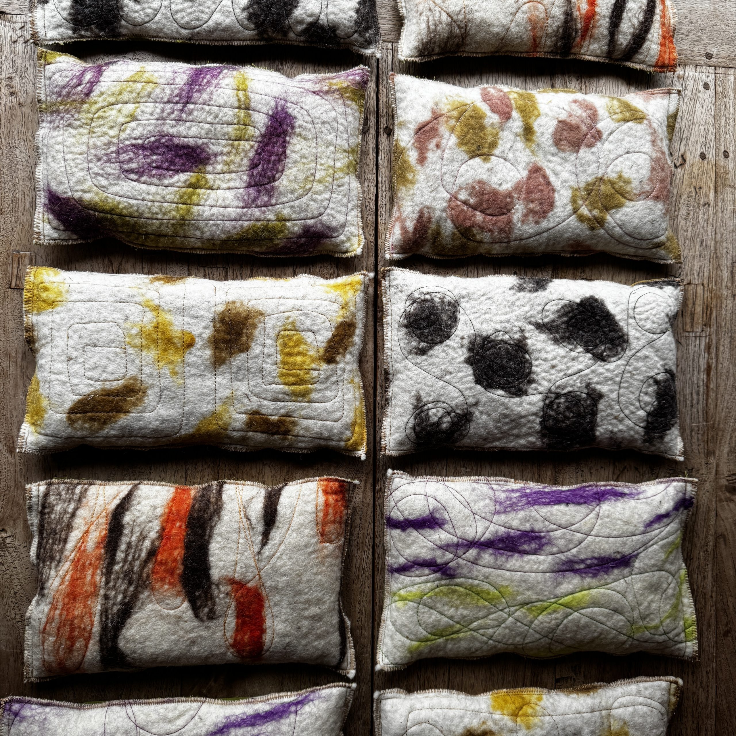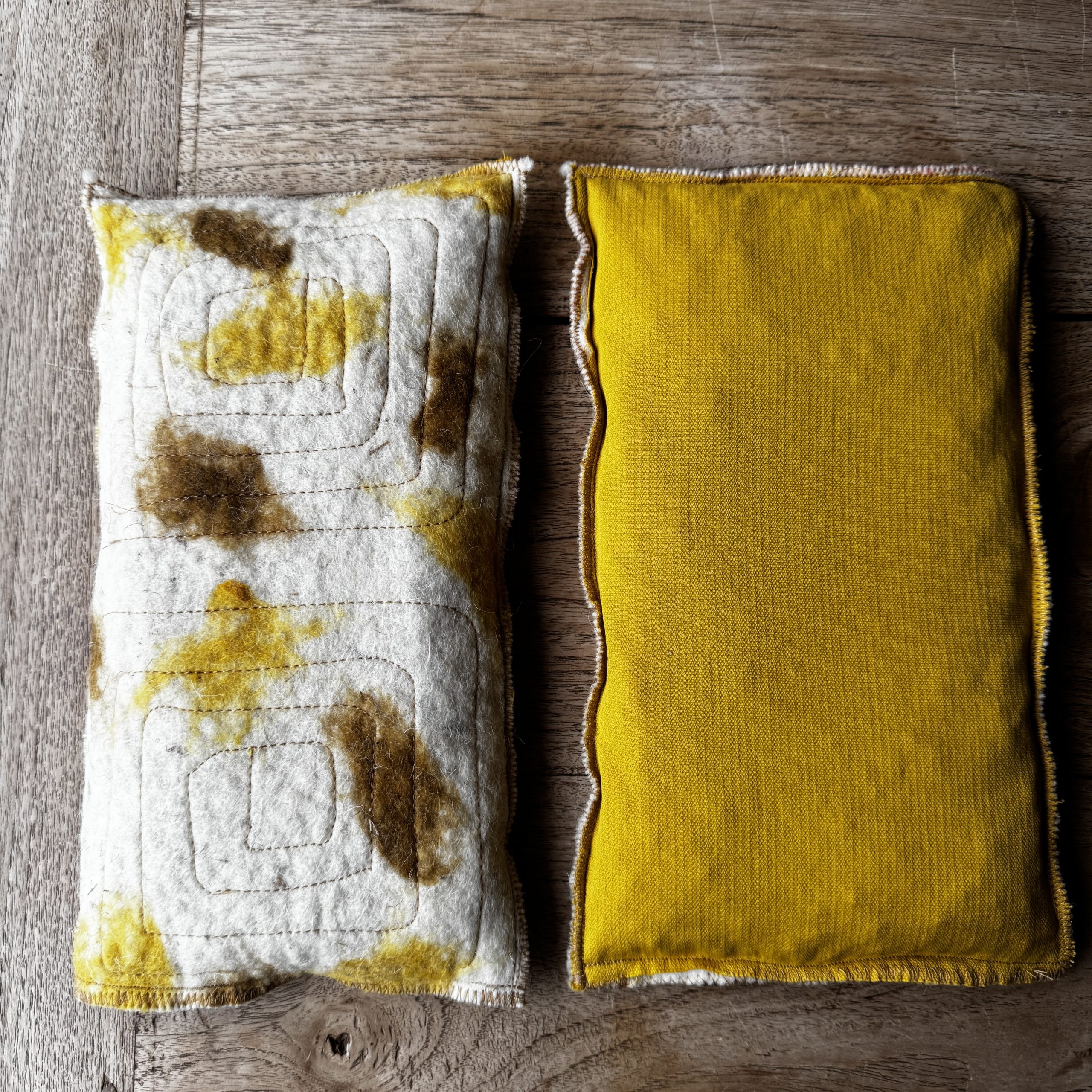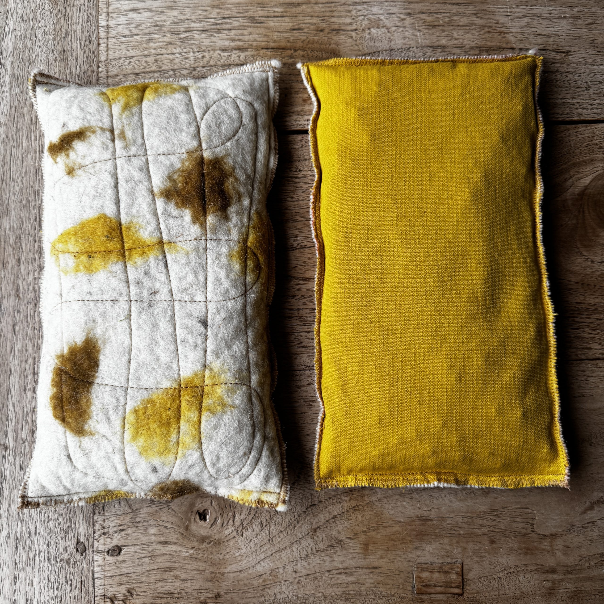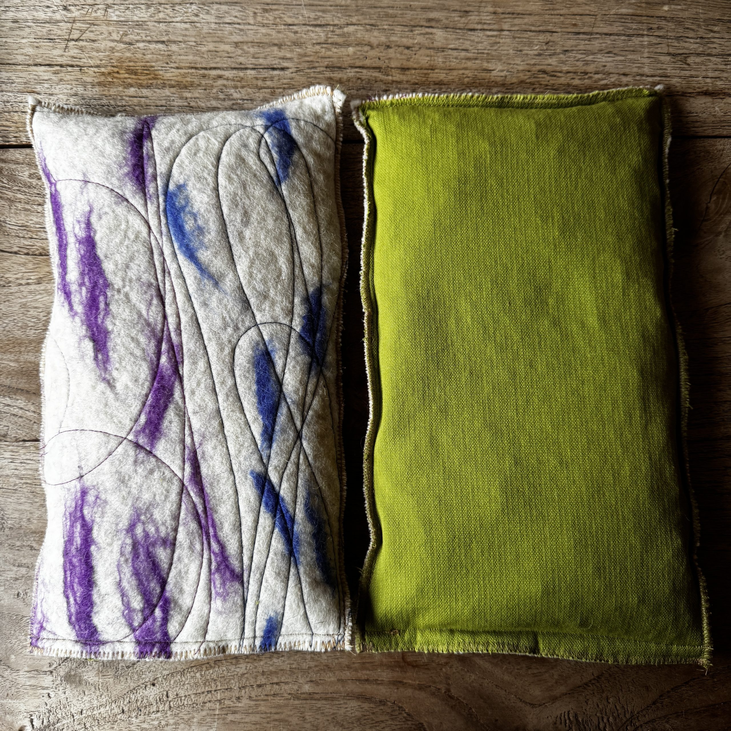 Un sac tèrmic amb dues cares i dues funcions. Per calent o fred amb teixit de llana i cotó, i farcit amb pinyols de cirera.